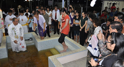 The Liturgy of the Word covered three readings taken from the Old Testament and two readings from the New Testament. In his homily, Bishop Julius Dusin Gitom shared that he was trilled to see that from the one Paschal candle the light was passed on from one to another until the whole open space outside was flooded with an ocean of light. It was an amazing sight and the event was a gesture of sharing the light of Jesus with others. He called on the congregation not to be mere spectators but to be active participants in spreading the divine light of Jesus. He went on to appeal to all to let go whatever hinder us towards the path of light / growth. To the catechumens, this is what is said “It is in dying with Christ that we will be able to rise with Him and this is the HOPE of this holy night.’ And to all others gathered, who are to renew their baptismal vows, he called upon them to live in union with the Lord, in a community of love and service.