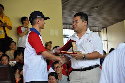 Pastor Antonio Tang presenting a memento to Isaac Pang