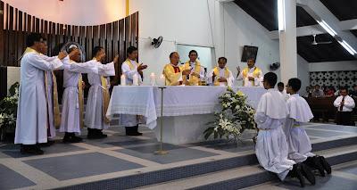 Sandakan : Bishop Julius Dusin Gitom launched the ‘Year of the Priest’ at Diocesan level on Saturday 29th August 2009 during Sunset Mass at St Mary’s Cathedral. The date of the launching, according to Bishop Julius was picked to coincide with the Diocesan BEC Seminar on 29th ~ 31st August 2009 where the lay faithful, religious and Clergy from the 4 parishes would be well represented. Also in attendance during the launching were Fr Dr Charles Chiew from the Diocese of Keningau who was a speaker of the Seminar and Fr Dr Henry Siew from the Archdiocese of Singapore who was here on a pastoral tour.