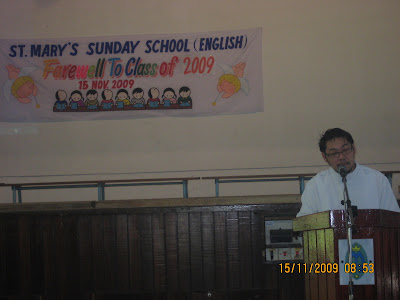 The English section Sunday School classes closed for the year with celebration function at the St. Mary’s Parish Hall on the 15-11-2009. The event kick off at 8.15am with presentations by the various classes and awards presentation.