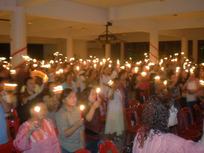 After the mass, the parishioners gathered at the parish hall basement for a night of caroling by candlelight.
