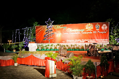 Once again, the Christmas Carols at the Dataran MPS was held from the 16-12-2009 to the 18-12-2009. This first one was held last year and once again the organizers were from the Office of the Member of Parliament P186, The Majlis Perbandaran Sandakan (MPS) and the Council of Churches Sandakan. The Secretary of the MPS Tuan Hj. Hamzan Hj. Supain was also in attendance besides the MPS President Ir. James Wong, Pastor James Kwan of the Calvary Charismatic Church, other Church leaders of the Churches in Sandakan and various community leaders.