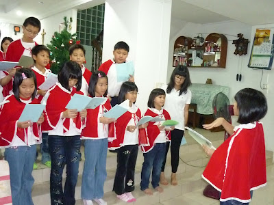 斗湖圣三天主堂华文组圣诞報佳音团的沿户报佳音活动 斗湖圣三堂华文组有二组青年, 一组小孩報佳音团从13.12.2009至18.12.2009到教友的家庭传报圣诞节信讯。今年的圣诞讯息取自依撒意亚先知书第9 章5节。 “ 有一个婴孩为我们诞生了,有一个儿子赐给了我们; 他肩上担负着王权,他的名字要称为神奇的谋士, 强有力的天主,永远之父,和平之王。” 斗湖圣三堂华文组有二组青年, 一组小孩報佳音团与拿督拿汀余伦福及家人合照.