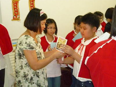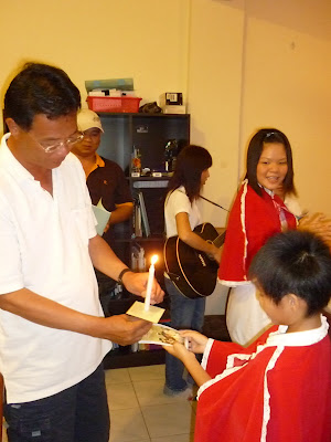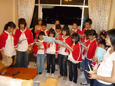 向教友献上点燃着的蜡烛象征耶稣基督的光与爱,照耀世人。 青年组报佳音团