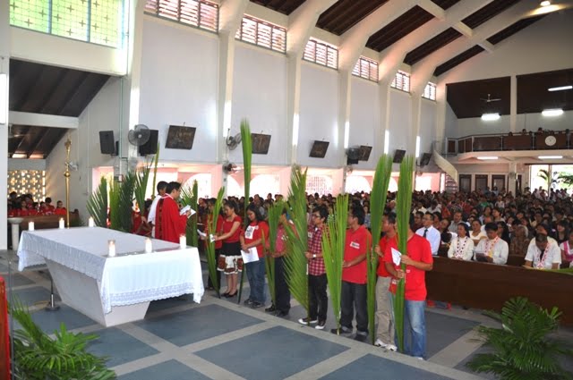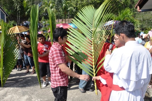 Misa Kudus yang dirayakan dalam Bahasa Malaysia telah dihadiri oleh 1,500 umat dan memenuhi tempat duduk dalam gereja serta terdapat juga umat yang berdiri di luar gereja. Daun palma yang telah diserahkan sebelum memulakan perarakan ke Gereja, Fr. Paul berkata “(sambil menyebut nama belia), terimalah daun palma ini sebagai tanda iman kamu” dan belia menjawab “Amen”.