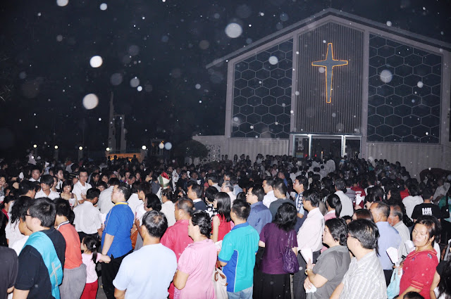On Easter Vigil, which is regarded as the ‘Mother of all holy vigils’ and at 8.00 pm, Bishop Julius began the ‘Service of the Light’ at the frontage of the Cathedral. The elect and candidates who had journeyed in the RCIA process together with the congregation proceeded into the darkened Cathedral bearing lighted candles.