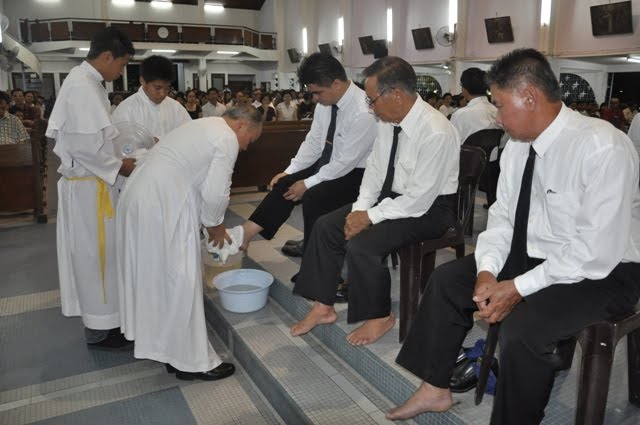 Holy Thursday found Bishop Julius washing the feet of 12 chosen parishioners of the Cathedral Parish, recalling the acts of Jesus at the last supper when he instructed his apostles to serve one another (Jn 13: 3-17). The humble act befits the motto of the prelate, ‘Serve one another with God’s love.’ The celebration encompasses the threefold, most high gifts of the ministerial priesthood, the Eucharist and the new commandment of love.