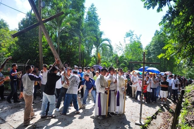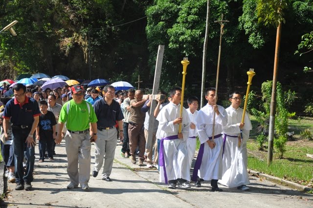 Good Friday, we are drawn into the most sorrowful mysteries, the death of Jesus on the Cross. It commemorates the happenings between Christ’s condemnation to death and his crucifixion, is a day of penance, fasting and prayer and participation in the passion of the Lord. At around 9.00 am, a huge crowd of devoted parishioners from the three language communities gathered at the Cathedral and walked the Way of the Cross for the final time during the Lenten season. They walked the 14 stations with the last station at St Mary’s Convent, commemorating at each station with prayers and hymns.