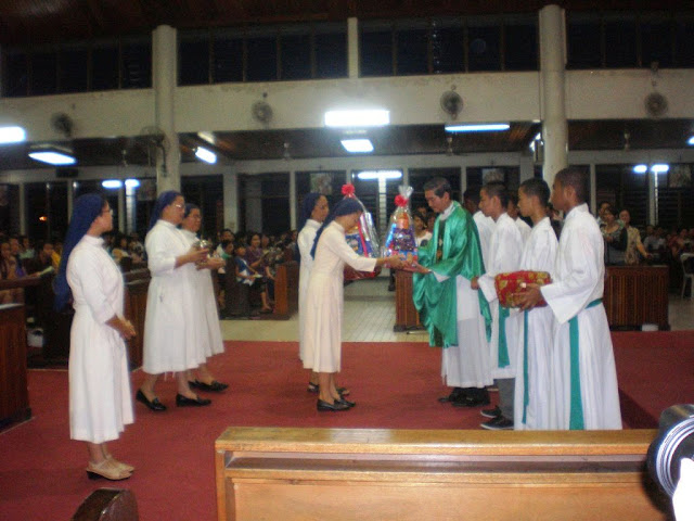 The celebration started with a thanksgiving sunset mass, presided by Msgr. Nicholas Ong, concelebrated by Fr. Fundes Motiung of Stella Maris Church Tanjung Aru. In his homily, Msgr. Ong told the parishioners that the Franciscan Sisters were doing exactly what our Lord Jesus had asked us to do—give up everything and follow him.