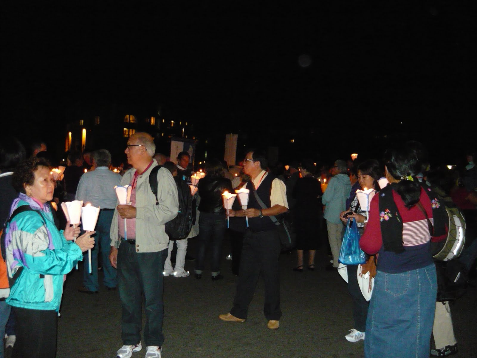 After arriving in the evening at Lourdes from Marseilles, the group had dinner and went straight to join the candle light procession, reciting the Holy Rosary in languages of the pilgrims.