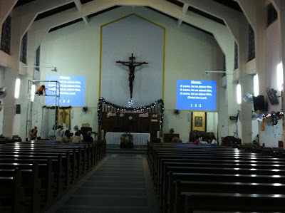 After the general church cleaning and the surrounding area last sunday, preparation for Christmas 2010 is at it’s earnest. As the photos show above, a lot of activities are going on at the St. Mary’s Cathedral tonight. Another addition to this year’s preparation which is adding to the excitement is the multi media facility being install now at the Cathedral. It is anticipated that, this will be used for the very first time in our Cathedral by Christmas Eve.