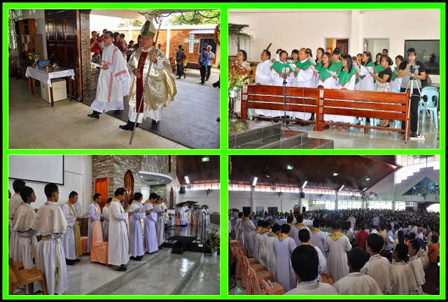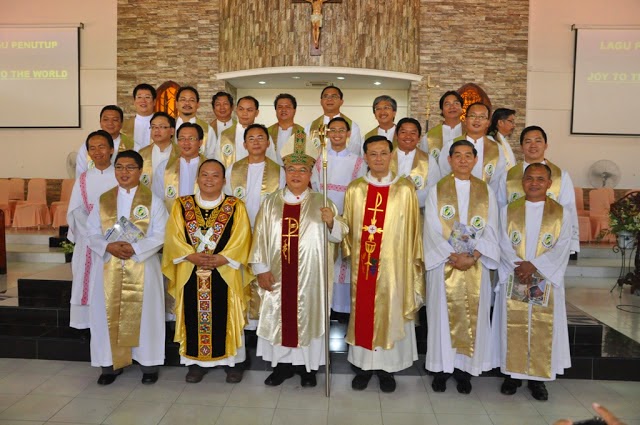 Rt Rev Julius Dusin Gitom, the Bishop of Sandakan presided over the Solemn Mass, concelebrated by Most Rev John Wong, Coadjutor Archbishop of Kota Kinabalu, Fr Richard Ng, the rector of St Peter’s College Kuching (SPC), Major Seminary of East Malaysia and 18 other priests from the three arch / dioceses of Sabah. Close to 900 people from across the diocese including religious sisters of the Franciscan Sisters of the Immaculate Conception, Good Shepherd Sisters, Daughters of St Paul and seminarians from SPC attended the celebration.
