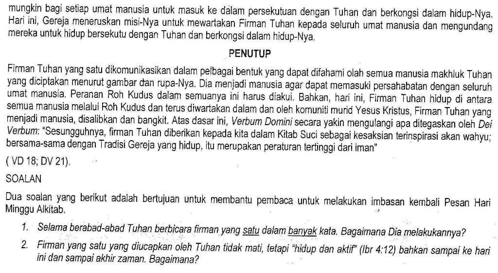 PESAN HARI MINGGU ALKITAB 2011 by Admin | Jul 9, 2011 | Uncategorized Muka surat 1 Muka surat 2 Muka surat 3