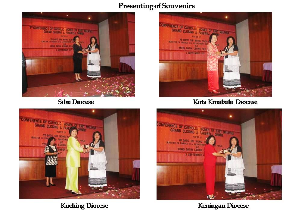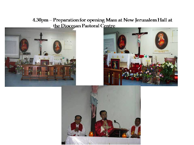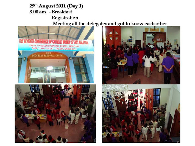 The first day of the event 29th August 2011, started with the Opening Mass presided by Co-adjutor Archbishop John Wong of Kota Kinabalu concelebrated by Bishop Dominic Su of Sibu and Fr Claudius of Keningau at the New Jerusalem Hall at the Diocesan Pastoral Centre. After Holy Mass, participants were feted to a dinner reception in a local restaurant with cultural presentations from the various arch/dioceses.