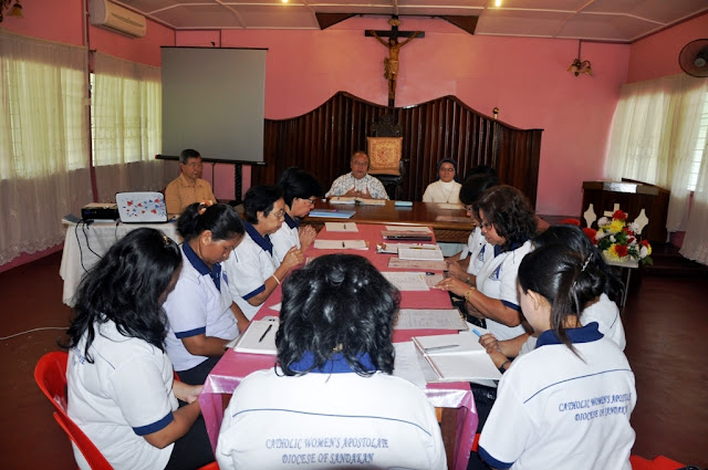 SANDAKAN: Seramai 11 orang perwakilan dari keempat-empat paroki yang terdiri daripada Penyelaras, Setiausaha dan seorang lagi atas lantikan Paderi Paroki telah mengadakan Doa Rosari yang dipimpin oleh Sr. Appollonia Gumpu, fsic sebagai ahli kehormat Kerasulan Wanita Katolik Keuskupan Sandakan. Acara bertempat di Pusat Retret Keuskupan, Ulu Dusun itu disusuli dengan BBQ dan fellowship pada sebelah malam 9 September 2011.
