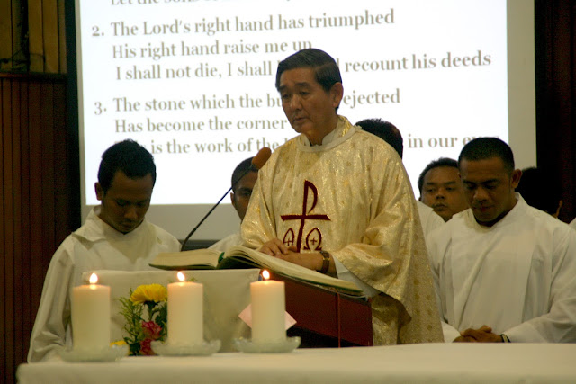 The mystery of the TRIDUM begins on Holy Thursday till the day the Lord is raised from the dead. Msgr Nicholas Ong said ‘ The Passion of Christ has brought us victory and salvation. The day we rejoice and welcome Christ as our king. The saving love of Christ is shown when Christ embrace humbly the Cross and these are the tremendous examples of humility and the true meaning of Christ’s mission ~ to love and to serve humbly to one and another which happen in the Last Supper’.
