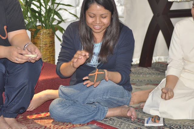 Selesai sahaja merenung, tim diberi masa untuk membuat perkongsian sesama mereka kerana melalui perkongsian mereka boleh melihat sendiri perjalanan mereka sebagai yang melayani, bekerja dan belajar. Malah mereka akan merasa disokong kerana ada orang yang mendengar perkongsian mereka. Bukan itu sahaja malah mereka juga dapat melihat bagaimana Tuhan berjalan bersama mereka sepanjang pelayanan mereka. Perkongsian diteruskan sambil membentuk simbol keperibadian Yesus dalam hidup mereka melalui tanah liat.