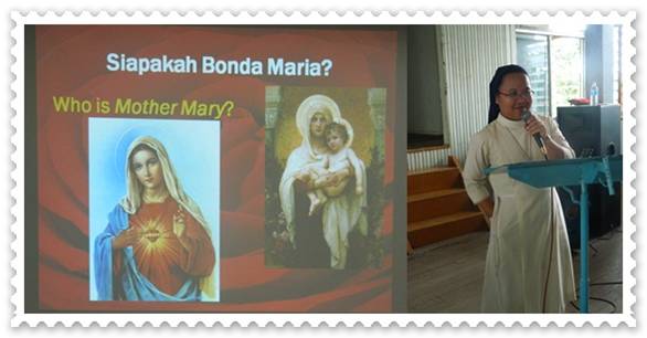 The gathering started at 2.00 pm with a praise and worship session conducted by Elton Susanto followed by an Opening Prayer led by Jenalyn Arellano. Sr Marysia FSIC, the spiritual advisor of PYA facilitated the 1st session entitled ‘Who is Mary’, and ‘the Origin of the Rosary’. Mary is the Mother of God; she is a creature like us. She is merciful that by praying the rosary often with devotion, she will not leave our needs unattended simply because; in faith she is our Mother. The name rosary originated from the word “Rosarium” (a rose garden). The rosary then had 150 beads the same number of psalms in the bible. Later on, the rosary was divided into 15 mysteries and these mysteries were events of Jesus life as written in the gospels. On 16th October 2002, the late Pope John Paul II had added a new mystery which is called the “Luminous Mysteries or the Mysteries of Light”