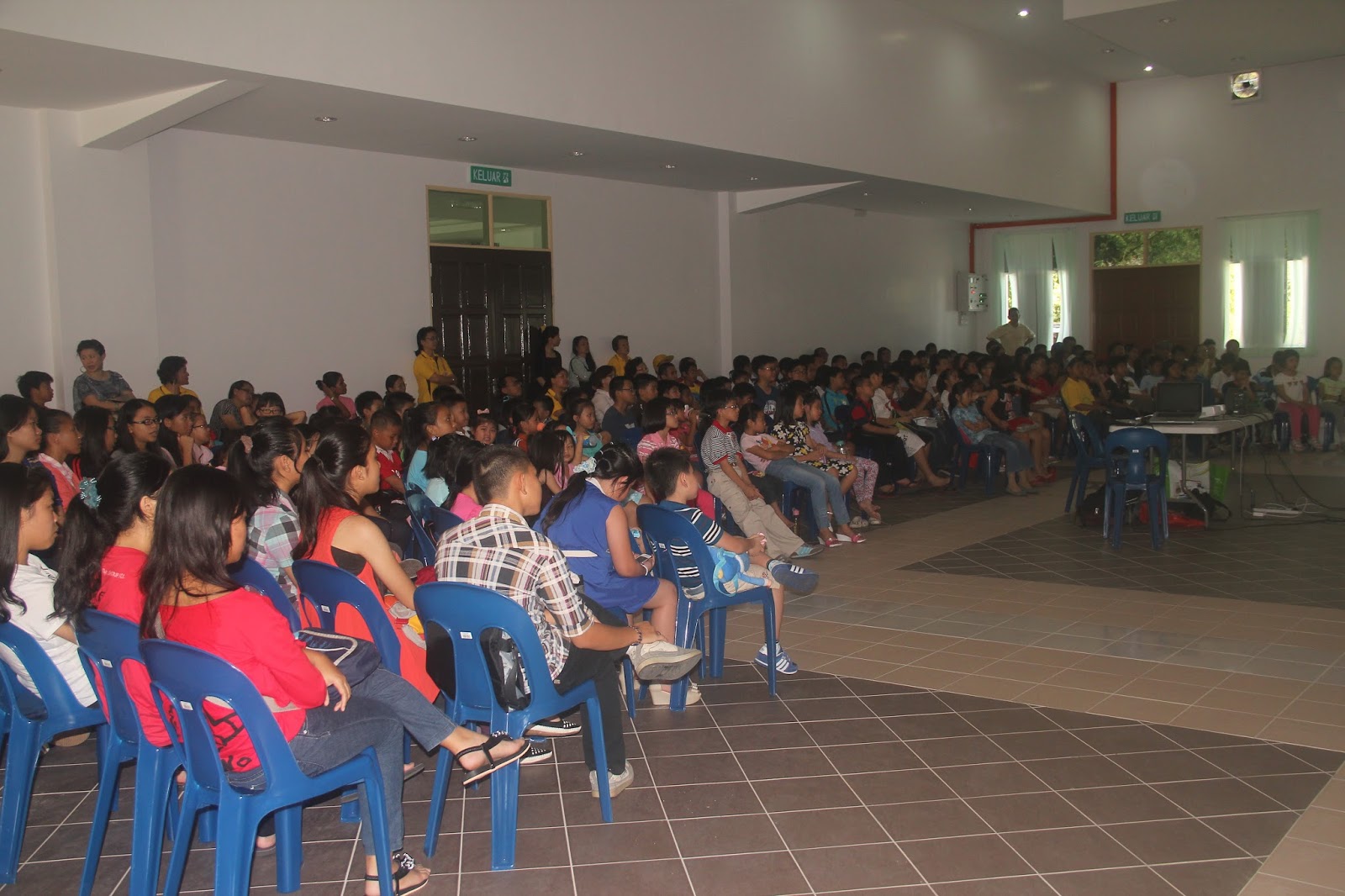 The teachers started gathering at the Hall at 8.30 am and registration started almost immediately. The “Bible Sunday Camp” activity involved a DVD show on the Bible from the Book of Genesis to the Battle of Jericho. Students from level one to ten participated in the video show.