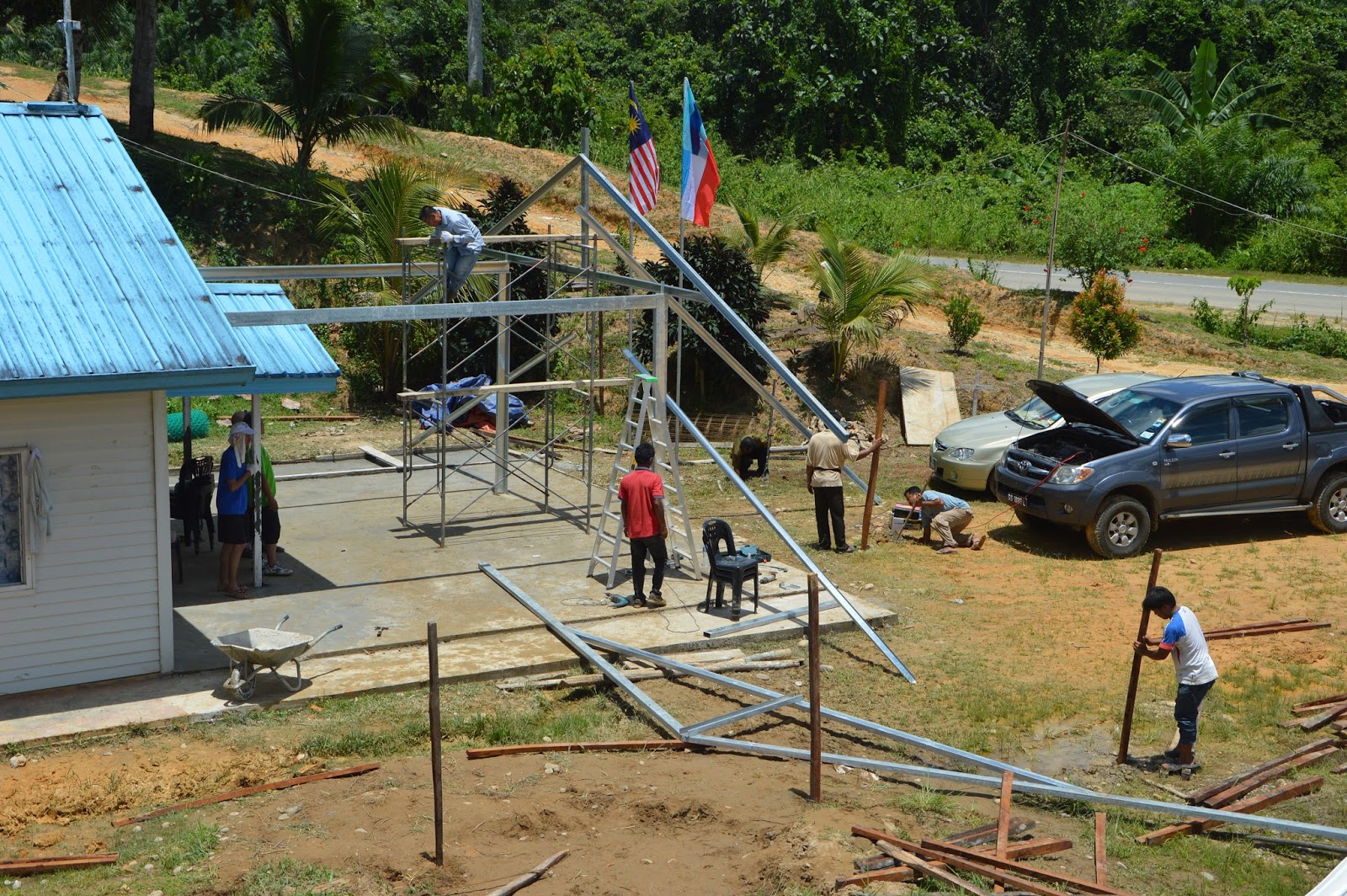 Sandakan : Jesus said, “I have come not to be served but to serve….” Mark 10:45 has inspired 37 men, women and children from the BECs of Indah Jaya, Chi Hwa, Kg. Bakau and 2 PPC representatives from St. Mary’s Cathedral to Kg. Sukang Paitan on 31st. Aug -1st Sept 2013 for community work at St. Francis of Assisi Chapel. Their visit to this remote Chapel about 200 km from Sandakan Town is to foster relationship and experience true Christian fellowship so that together, they may share and grow in faith through a Gotong Royong (community work) project.