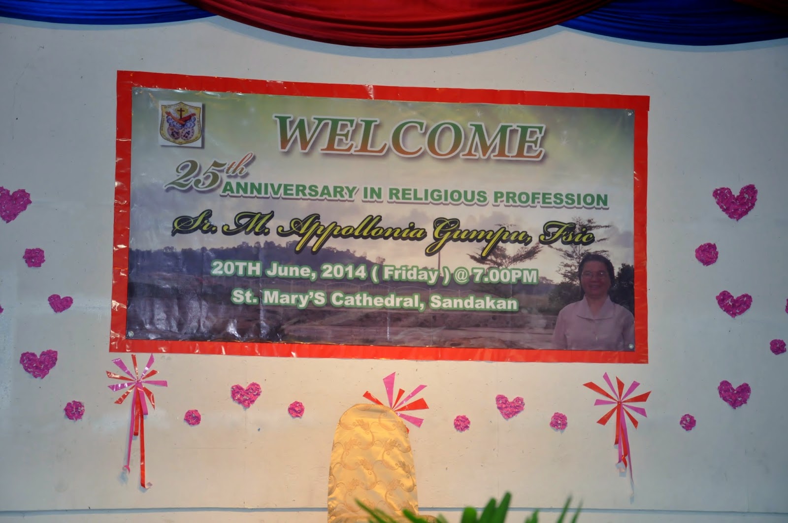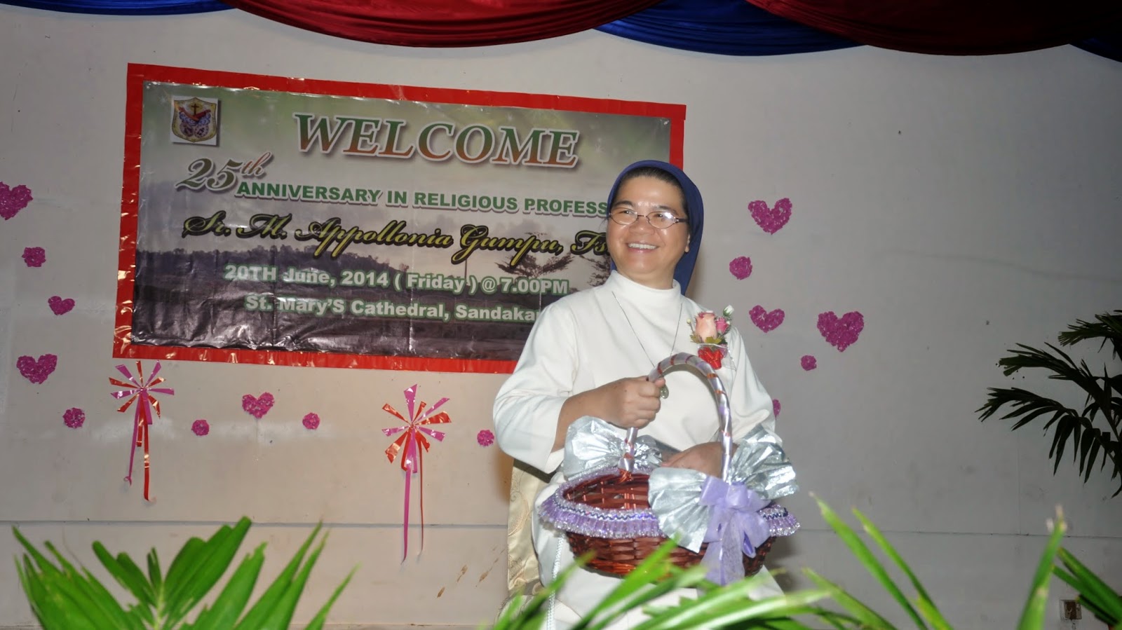 I wish to sincerely thank all of you here today for helping me to celebrate 25 years as an FSIC. You have made this day a memorable event for me I am grateful to everyone who throughout these years have encouraged and supported me in so many ways; those who have held me in prayer along the way, especially my family. I extend a special thank in particular, my mother Cathrina Koro Linggu and my late father, Gumpu James Gontoung for their support given me all the while.