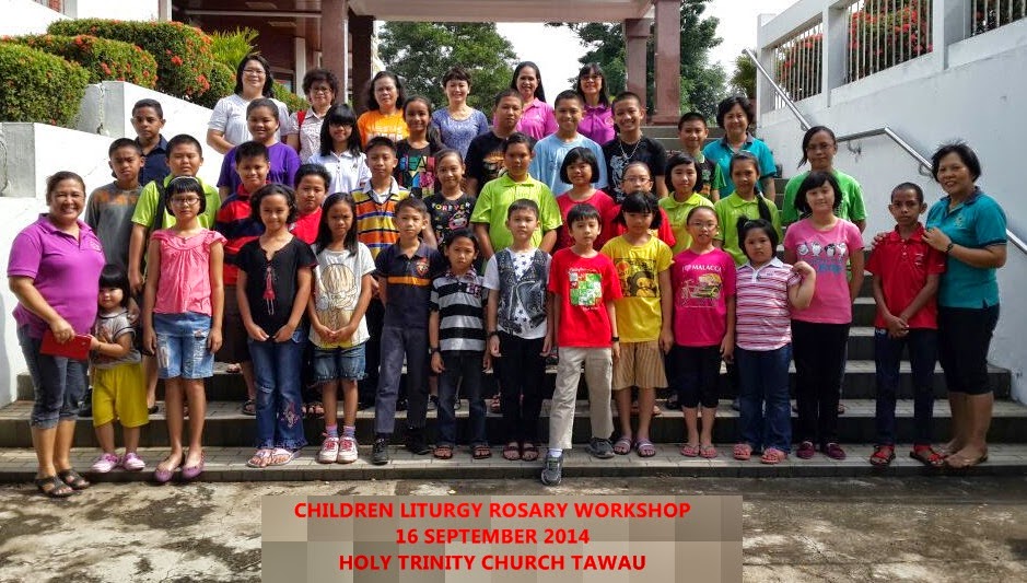 The facilitators of the Children’s Liturgy of Holy Trinity Parish Tawau organized a one-day Rosary Workshop on 16th September 2014 for children aged 10 years and above. It was attended by some 30 students, English Sunday School teachers and parents. The workshop commenced from 9.00 am to 4.00 pm.
