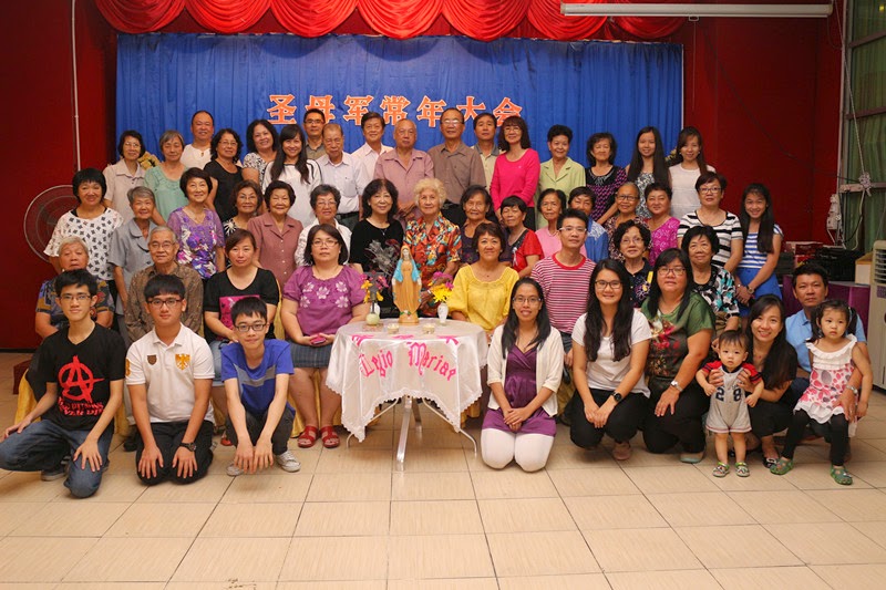 山打根圣玛莉天主堂华文圣母军福传之星圣母区团于2014 年 11 月 24 日晚上 7 时,在英皇酒家成功地举办了一年一度的常年大会。出席人数大约60 位,包括工作团员,辅助团员及家眷,场面温馨,乐也融融。大家以开会经开始宴会,团长黄瑞钦姐妹欢迎大家抽空出席,而区团指导员陈兴勋兄弟更鼓励大家在这常年大会中彼此交流,交换在一年来支团的一些工作,分享并互相勉励。值得一提的是今年的常年大会我们多了一个新成立支团–信德之后支团,由圣玛莉亚支团的邓桃莲姐妹以团长的身份带领一班学生青年积极参与圣母军的行列。宴会以连贯经及闭会经结束,全体照过后