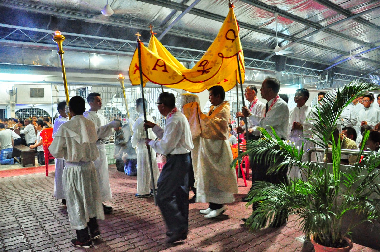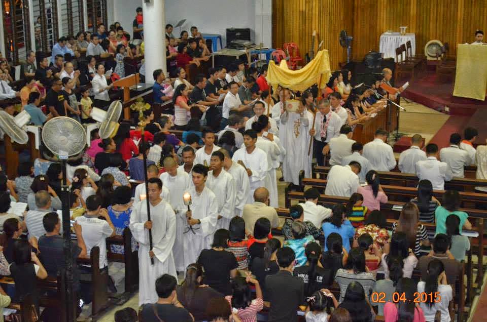 Sandakan : More than 2,000 faithful thronged St Mary’s Cathedral during Holy Thursday, 2nd April 2015. It marks the beginning of the sacred ‘Triduum’ which stresses on the humility of service and emphasizes the crucial importance of the Eucharist, the sacrifice of Christ’s Body which we now find present in the consecrated Host. It celebrates the institution of the Eucharist as the true body and blood of Jesus Christ and the institution of the sacrament of the priesthood.