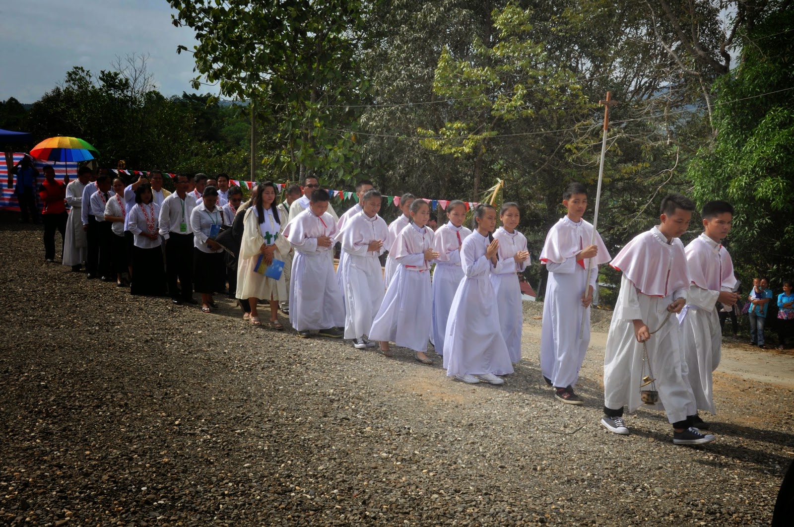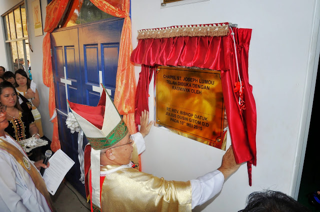 Telupid : Lebih dari 700 umat setempat dan wakil-wakil dari outstasi Paroki St Martin Telupid berhimpun di Kampung Lumou untuk turut serta dalam upacara pemberkatan dan perasmian chapel baru St Joseph yang disempurnakan oleh Bapa Uskup Julius Dusin Gitom pada 10hb Mei 2015.
