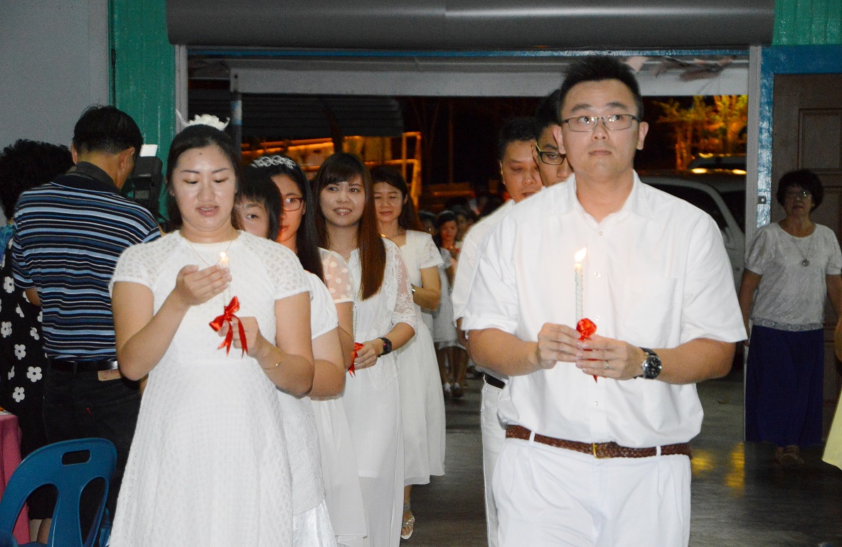 Sandakan: On the Feast of Pentecost (15th May 2016), St. Mary‘s Cathedral welcomed 76 neophytes into their fold with a dinner reception at the Parish Hall. This year around, St. Mary’s Cathedral received 54 members from the Bahasa speaking community, 16 from the Chinese and 6 from the English speaking community. The occasion set an environment connecting the neophytes and the parishioners.