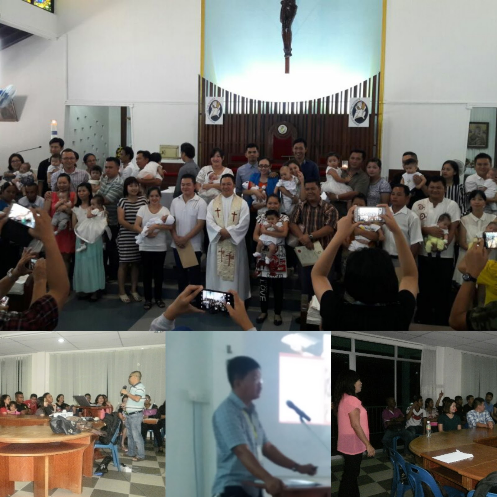 Sandakan: This year 2016, the Family Life Ministry of Sandakan from the 3 languages: Bahasa Malaysia, English and Chinese speaking group, worked hand-in-hand with Fr. Sunny Chung, in giving Catechesis to parents and godparents of would-be-baptised infants. The talk was held at the Parish Conference Hall from 7.00 pm to 10.00 pm. This is the second year wherein the talks were given to nearly 60 participants at different months and dates: first was held in April and the second one in September. The former was given in Bahasa Malaysia and the latter was in English, with the hope that they may effectively share on the responsibility of parents and godparents towards the faith formation of our future Catholics.