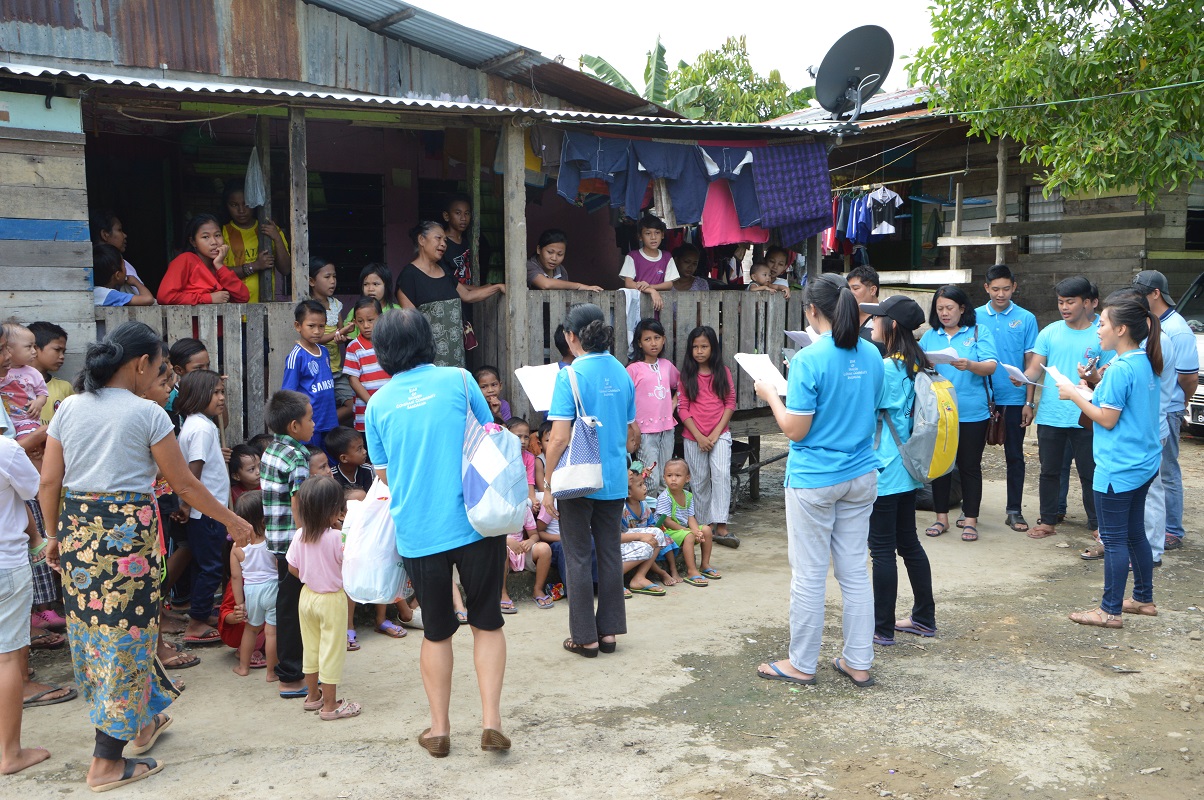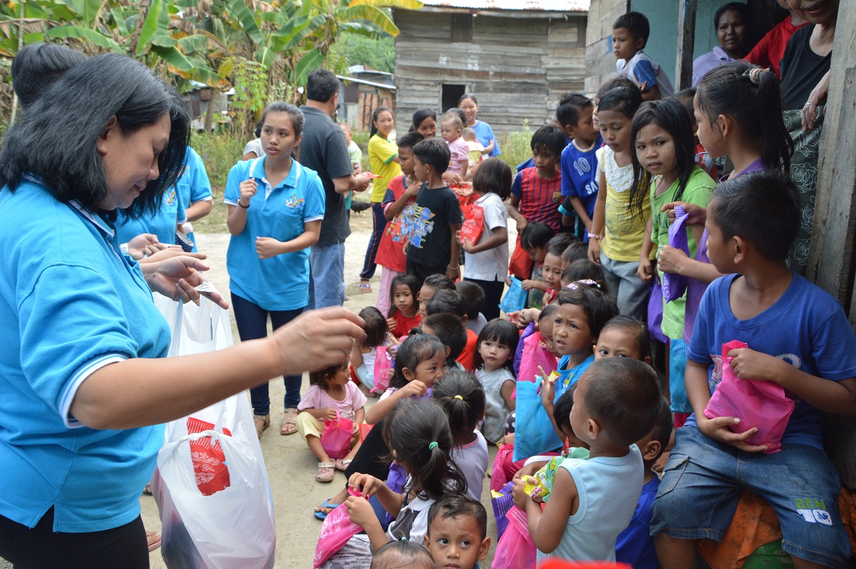It all started when a member who is working in the hospital informed the community: a boy patient who was terminally ill returned home due to parents who could not afford his further treatment in Kota Kinabalu. The family lives in a squatter of Indonesian community in Sibuga road, Sandakan. The boy has 9 siblings and the parents, vegetable farmers, informed the visiting members that they have left their son’s fate in the hands of God. Saddened by the hardship of the boy’s family, the youth took the opportunity to organize Christmas joy to cheer up the family and the surrounding children living in the squatters. They pooled their resources together and the elders chipped-in contributing 60 packets of food, goodies and gifts to 14 families living in that area.