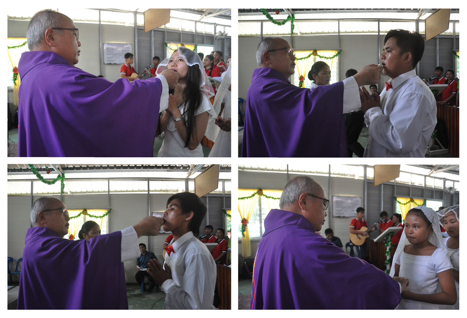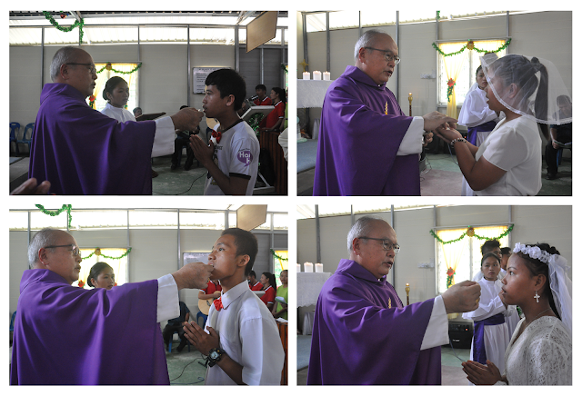 The auspicious event started with Eucharistic Mass at 10.00am which was attended by more than 800 faithful with His Lordship Bishop Julius Dusin Gitom as celebrant and con-celebrated by the Mission Paitan resident Priest Fr. Thomas Makajil and assisted by Deacon Christopher Ireneus. During the mass a total of 58 boys and girls from the Mission Paitan received their sacrament of First Holy Communion. By looking at the children dressed in white walking in faith to receive this great gift from God proves that the hard work of salvation is bearing fruit.