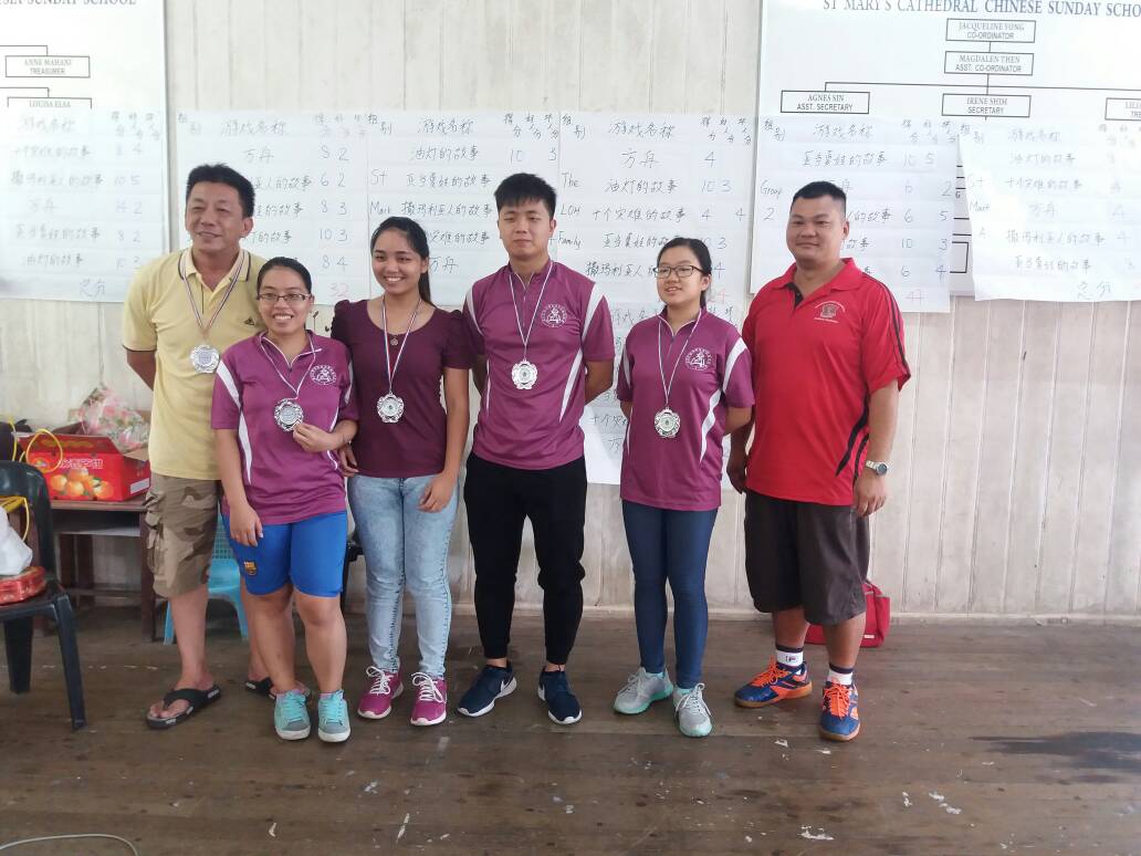 到了中午12时,成绩揭晓了。冠军是由圣母军团体的代表“罗氏家族”获得、亚军则是由圣玛莉青年团“第一组”获得,至于季军是圣神同祷会A组获得。虽然这次的比赛结果有人欢喜有人忧,但是大家都很珍惜能够一起交流和玩游戏的时光。并且期待着下一届联谊杯赛的带来。颁奖仪式结束后,大伙拍了大合照就带着依依不舍的心情踏上归家的路途。