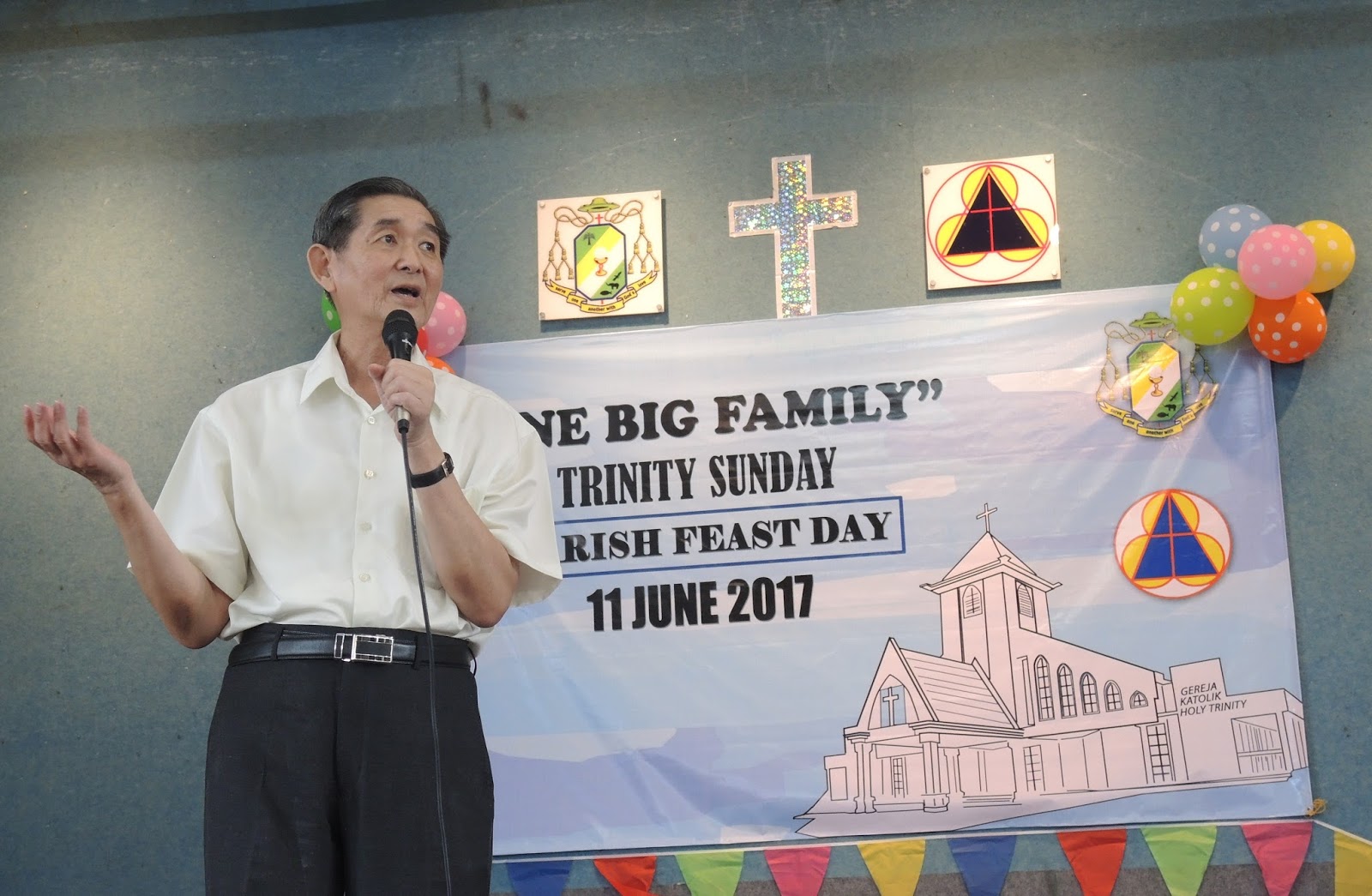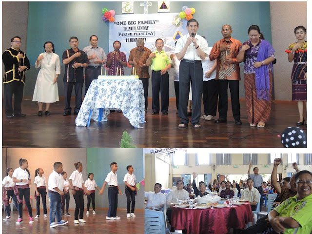 Holy Trinity Parish Tawau: Some 1000 or more parishioners participated in the Eucharistic celebration, presided over by Msgr. Nicholas Ong, on 11 June 2017, in conjunction with the Feast of the Most Holy Trinity, which the church has taken its name. The 8am Eucharistic Celebration, though it was raining, was still able to gather parishioners from various communities, groups, ministries and the nearby Chapel.