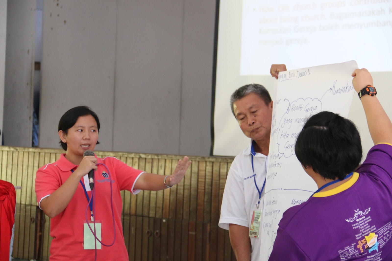 Soon after the session ended, participants were divided into nine groups to discuss on two lead questions related to the talk – ‘What are the realities in our church that hinder us from being church and how can church groups contribute to bring about being church.’ Three groups were called upon at random to present their findings and proposals to the audience.