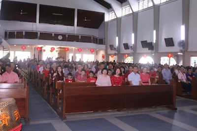 ( 山打根讯 ) 2018戊戍年新春彌撒于2月16日,早上8时举行。由山打根圣玛莉主教座堂Julius主教主祭、David神父、Christopher神父及Thomas神父共祭。