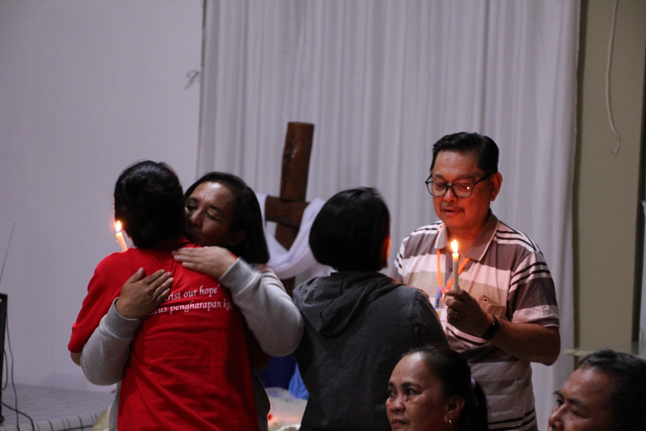 Suasana hening apabila Sesi Perdamaian sesama katekis dijalankan. Tangisan dapat didengari namun diakhiri dengan senyuman kerana Tuhan adalah maha pengasih dan penyayang.