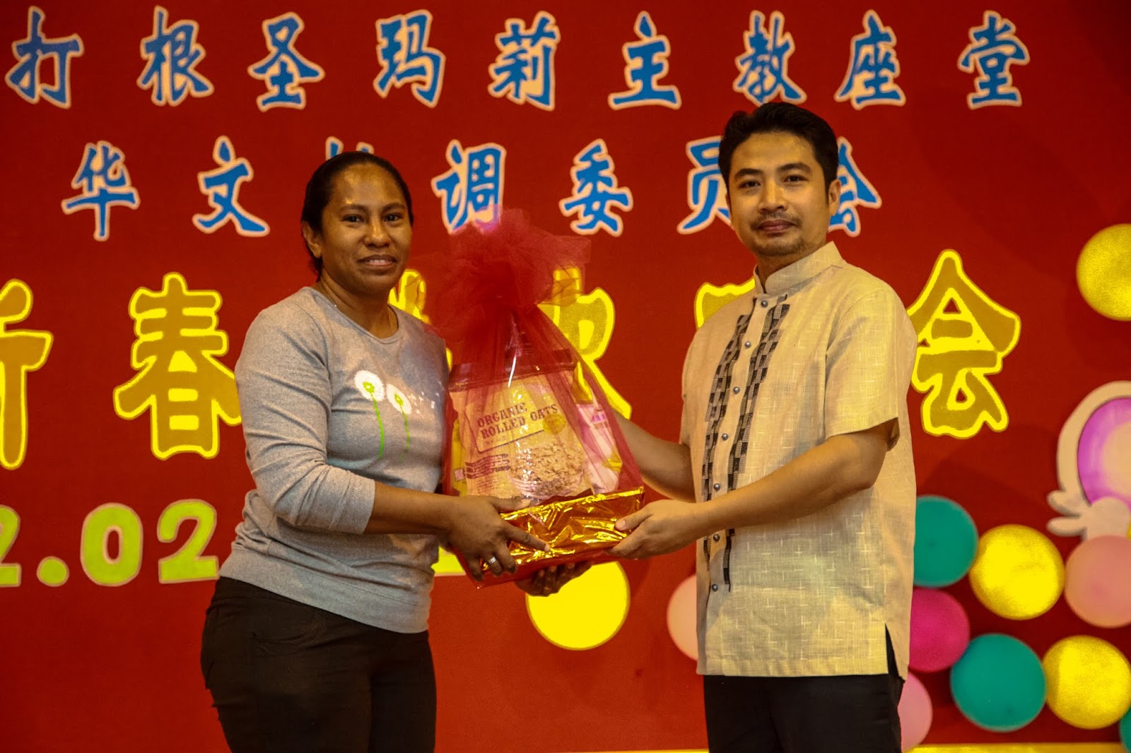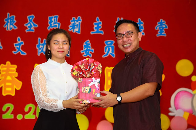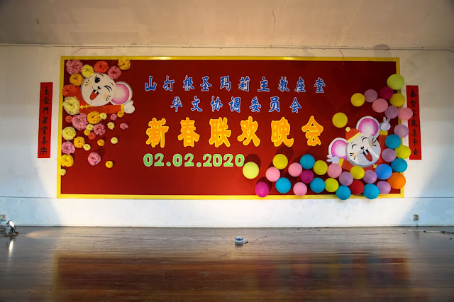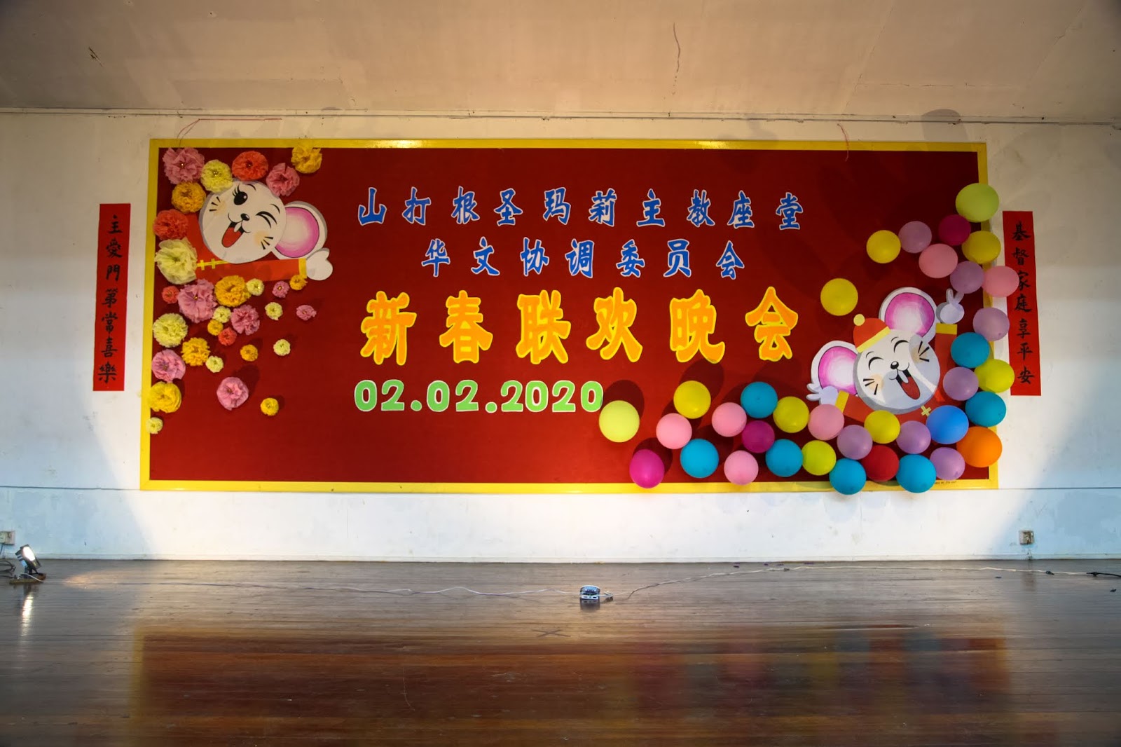 (山打根訊) 聖瑪莉主教座堂2020庚子年新春聯歡晚會于2月2日(年初九),晚上7時在活動中心進行。當晚的嘉賓有堂區司鐸 Fr. David、助理司鐸Fr. Christopher、Deacon Stephen、三位修女、修生Raymond李承發以及堂區牧靈委員會卸任主席,也有400余位來自各語文組的教友同歡共樂。