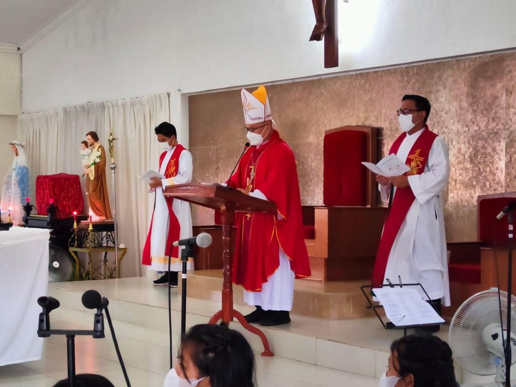 Bapa Uskup dalam homilinya memperkatakan tentang Roh Pengetahuan dan Pengertian yang merupakan anugerah iman kepada umat, terutamanya kepada penerima Sakramen Penguatan. Seramai 175 penerima Sakramen Penguatan semasa perayaan tersebut. Bapa Uskup menyatakan bahawa, semua yang kita hadapi akan berlalu. Menurutnya, tidak ada yang kekal melainkan anugerah yang telah diberikan oleh Tuhan. Selain itu, Bapa Uskup menekankan tentang kebersamaan dan sentiasa berpegang kepada pemberi iman dan pemberi anugerah itu.