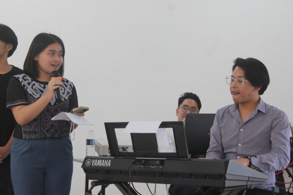 Saudari Cecilia sedang mempelajari ilmu nyanyian bersama penceramah Saudara Rhowell Roland