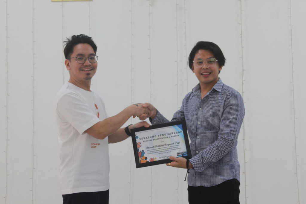 Saudara Rhowell Roland menerima token penghargaan daripada wakil pihak penganjur Saudara Ranelter Randasan