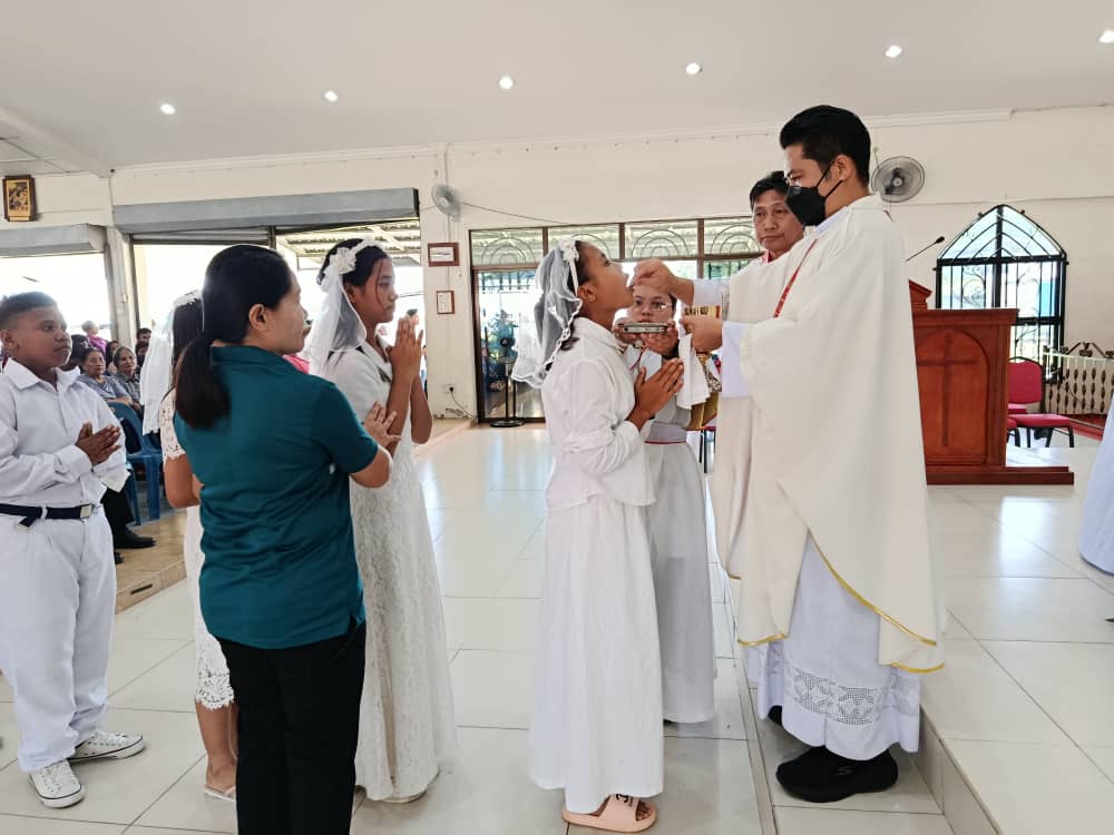 Pada hari perayaan, para calon menerima Sakramen Ekaristi dalam suasana meriah, suci dan penuh pengharapan. Sebelum berkat penutup, Fr. Christopher menyampaikan ucapan tahniah dan penghargaan kepada semua ahli Komiti Kateketikal atas komitmen mereka dalam menjayakan program ini. Dalam amanatnya kepada para penerima sakramen, beliau menekankan bahawa Kristus yang hadir dalam Ekaristi adalah Tuhan yang mengajar untuk mengasihi, mengampuni dan mentaati terutamanya kepada ibu bapa. Beliau turut menyeru para ibu bapa agar terus mendampingi dan menjadi teladan iman kepada anak-anak dalam kehidupan seharian.