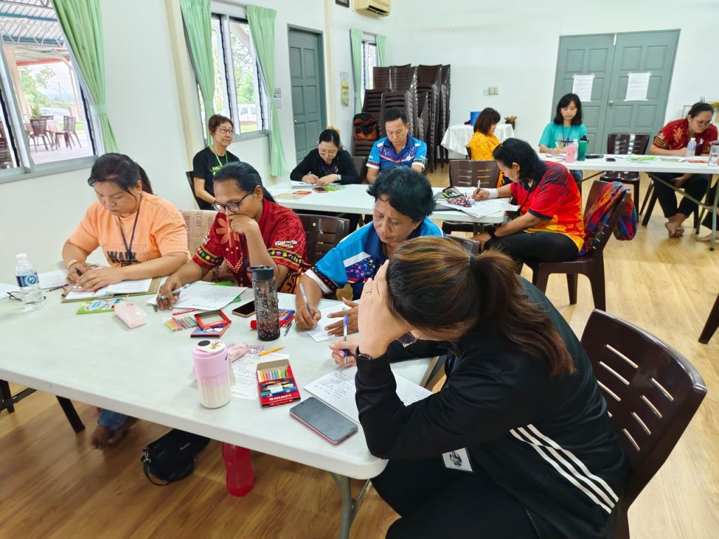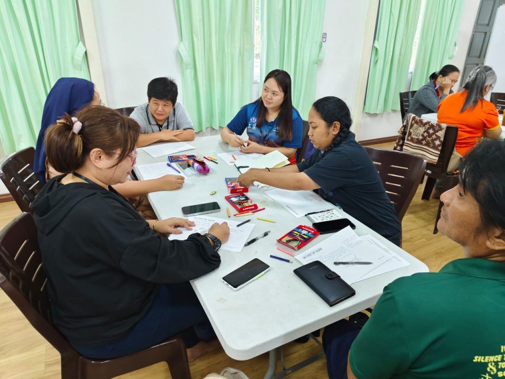 Puan Anna meneruskan sesi pengenalan dengan aktiviti kreatif “My Pot of Hope”, yang mengajak peserta meluahkan harapan dan cabaran masing-masing sepanjang rekoleksi melalui lukisan yang dilukis sendiri oleh peserta. Perkongsian diteruskan dalam kumpulan kecil bagi memperdalam refleksi dan pemahaman.