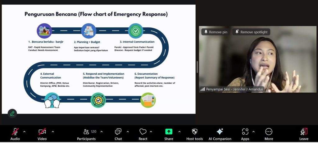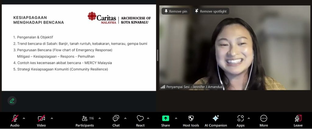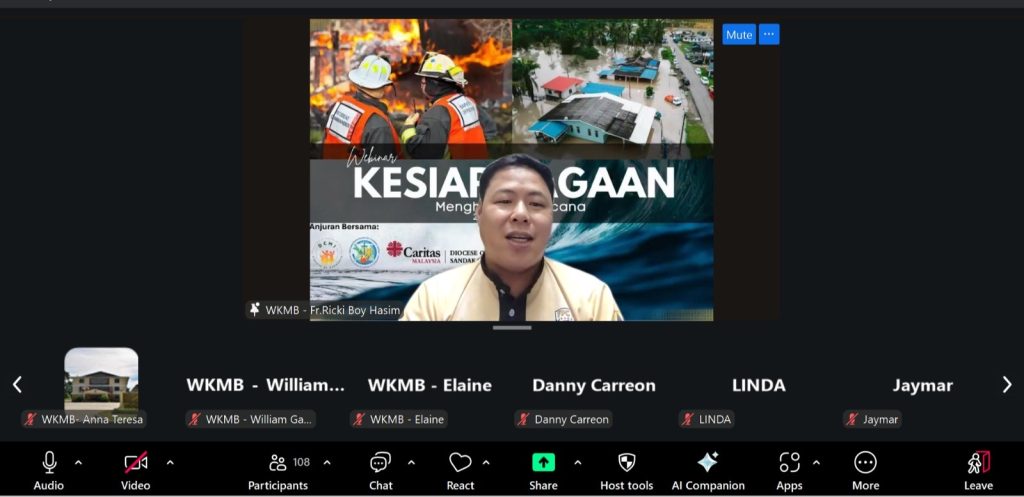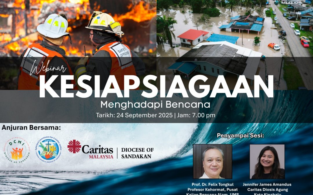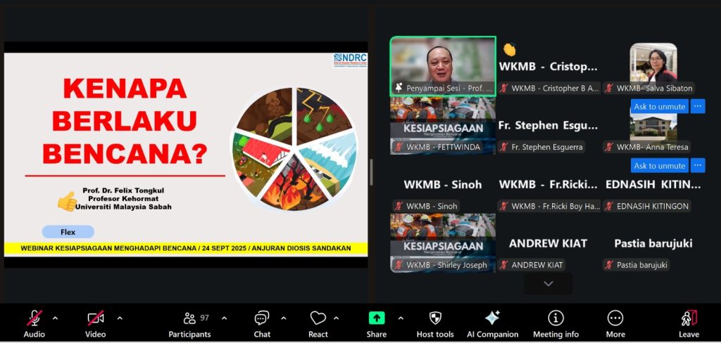 Diosis Sandakan, 24 September 2025 – Komisi Keadilan Ciptaan Tuhan, Komisi Migran & Perantau, serta Caritas Diosis Sandakan sekali lagi berganding bahu menganjurkan sebuah webinar bertajuk “Kesiapsiagaan Menghadapi Bencana.” Program ini dijalankan secara dalam talian melalui aplikasi ZOOM dan turut diadakan secara hibrid di beberapa lokasi di Diosis Sandakan.