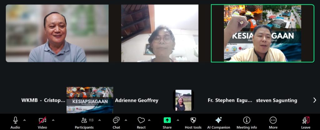 Webinar “Kesiapsiagaan Menghadapi Bencana” diakhiri dengan kata – kata penghargaan dan harapan serta doa penutup oleh Rev. Fr. Ricki Boy Hasim, Penasihat Rohani bagi Komisi Migran & Perantau dan Caritas Diosis Sandakan.