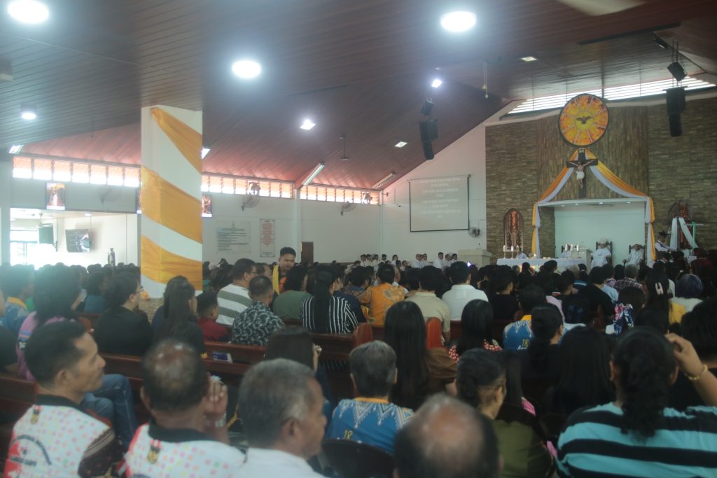 Dalam homilinya, Uskup Julius mengajak umat untuk memandang ke belakang dengan rasa syukur, hidup masa kini dengan iman, dan melangkah ke hadapan dengan pengharapan, selaras dengan semangat Gereja Sinodal yang berjalan bersama sebagai satu tubuh Kristus.