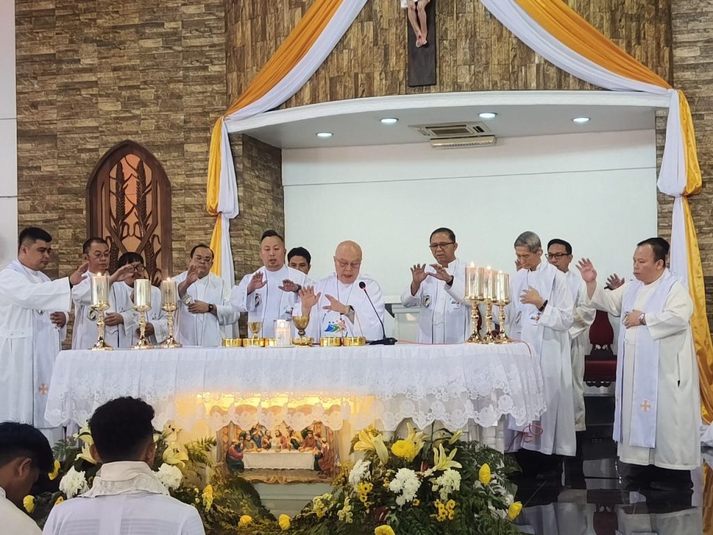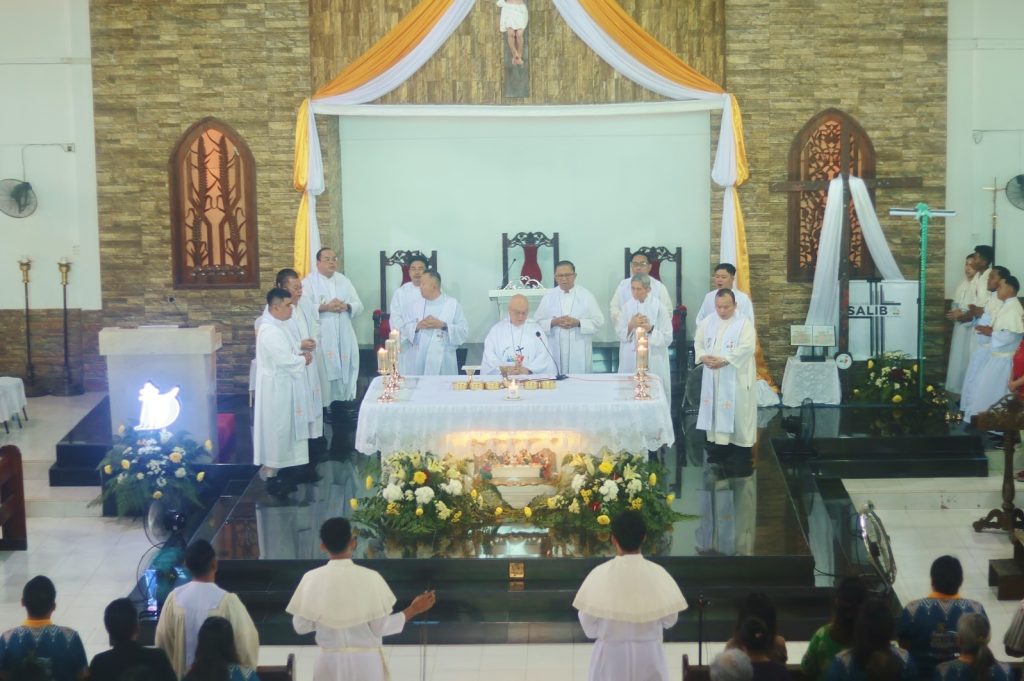 Misa Kudus ini telah diselebrankan oleh Yang Mulia Uskup Datuk Julius Dusin Gitom, Uskup Keuskupan Sandakan, bersama para paderi dari seluruh keuskupan. Turut hadir ialah Msgr. Nicholas Stephen, yang mewakili Yang Mulia Uskup Agung John Wong dari Keuskupan Agung Kota Kinabalu.
