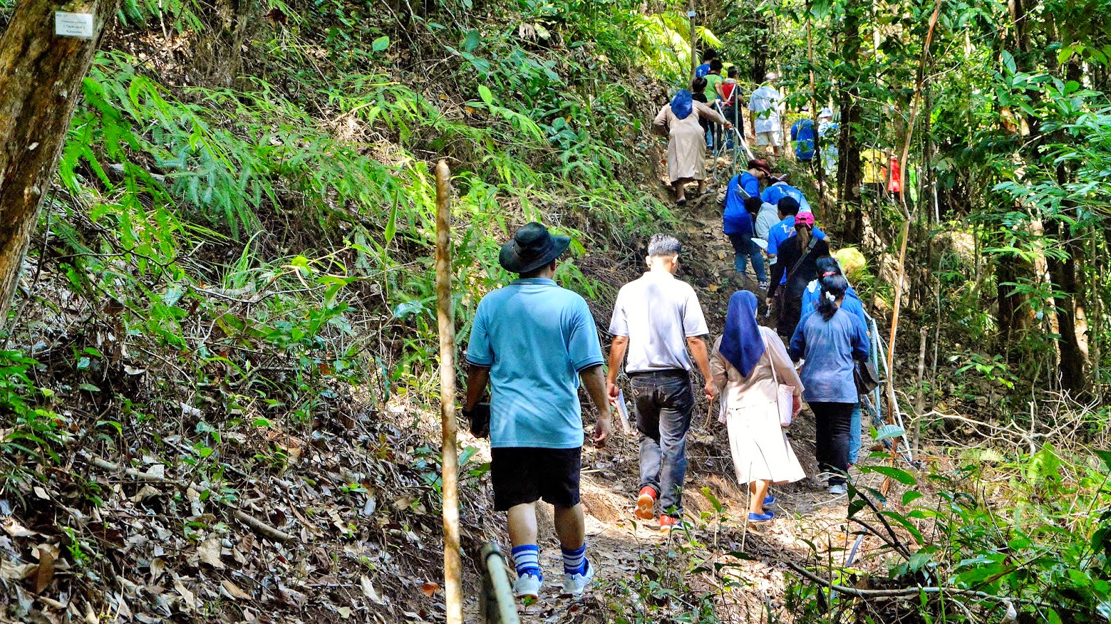 The Rosary Corridor on the Marian Mount, is a trail of some one kilometre of gradual terrain with lush greenery of trees and shrubs. The blessing and opening of the Rosary Corridor was graced by Rt Rev Julius Dusin Gitom, Bishop of Sandakan on 15th August 2014 in conjunction with the Parish Day of the Cathedral.