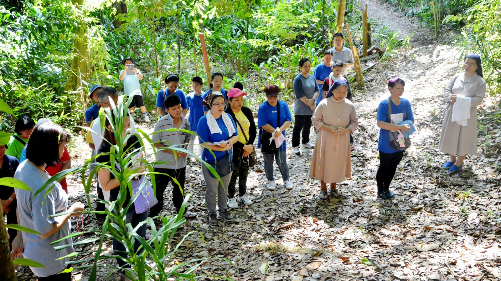 The recitation of the Holy Rosary was divided into two groups, with the senior parishioners leading 15 minutes ahead of the youth group. This was to avoid congestion at every mystery station. It was refreshing walking along the pathway in a peaceful and tranquil environment with a meditative mind that heighten one’s sense of spirituality and self-alignment with God. The recitation of the holy rosary blended with the surrounding atmosphere synchronized beautifully with the rhythms of nature.